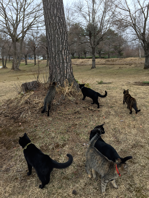 皆で初めて長距離お散歩したり